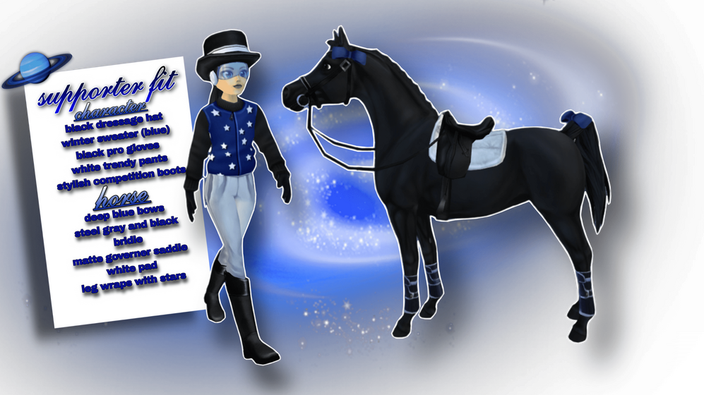 The Space Riders is an elite dressage team located on the North American server Night Sprinkles. We are owned and founded by Kirsten Moondaughter and created October 8th, 2022. We are one of the most popular dressage teams in North America. We are known for our space theme and outstanding dressage techniques in the arenas. TSR uses the dapple grey Arabian to symbol the moon, and a bright blue outfit to go with it. We are a very competitive community when in the arenas, but a joyful group of individuals outside.If you are interested or want to support our team, join our OS!
